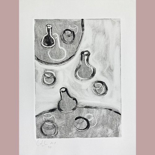 This work on paper is made as an exploratory study for larger works or hand colored prints. Occasionally a small variable “edition" exists of similar images, however they are all unique works. Lawrence throughout her career has used her small works on paper to build a visual vocabulary. None of LD Lawrence’s works are giclée.