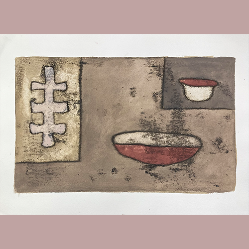 This work uses a combination of printmaking techniques such as direct printing and oil transfer. Oil transfer drawing is a technique that was popularized by the artist Paul Klee